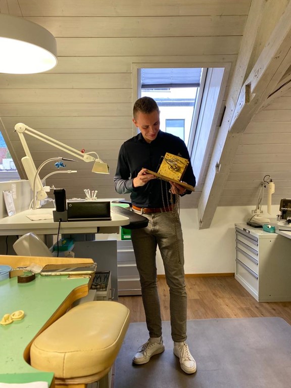 Niclas Zündt hat zum einen gute Vorkenntnisse mitgebracht – er kommt aus einer Uhrmacherfamilie, zum anderen lebt seinen Beruf, ist mit Herzblut dabei und überaus talentiert. Wir sind mit seiner Entwicklung überaus zufrieden!