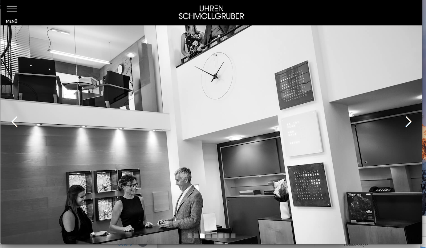 Die Präsentation des Sortiments ist eine Frage des persönlichen Stils und der unterscheidet sich ja nicht davon, ob man in der realen oder digitalen Welt unterwegs ist. Betont modern und unkonventionell, optisch ansprechend und niveauvoll wie das Geschäft ist daher auch die Firmenwebsite gestaltet. Sie bietet einen Überblick über das umfangreiche Sortiment – mit Bildern und Kurzinfos zu den Uhrenmodellen und die Möglichkeit, zu jeder Uhr direkt eine Anfrage zu senden, die schnell und unkompliziert beantwortet wird. Zudem informiert die Website über die Geschichte des Traditionsunternehmens und erlaubt über Bilder Einblicke in das Geschäft und die Uhrmacherwerkstatt.